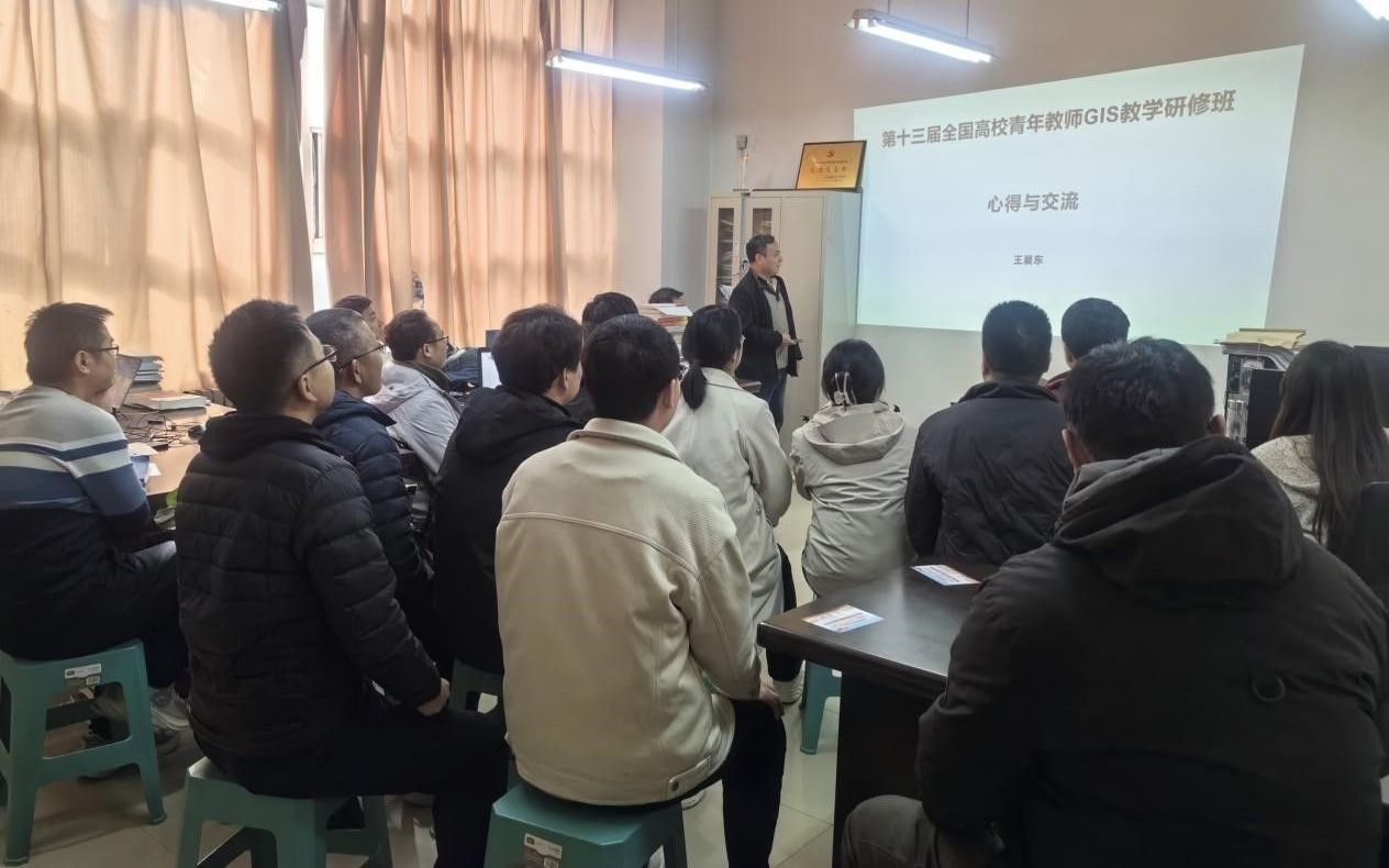 10月28日下午,空间信息与数字技术系在6214举行教学沙龙,王星东教授分享参加第十三届全国高校青年教师GIS教学研修班的心得体会。沙龙由系主任刘茜茜主持,空间信息与数字技术系全体教师参加。
