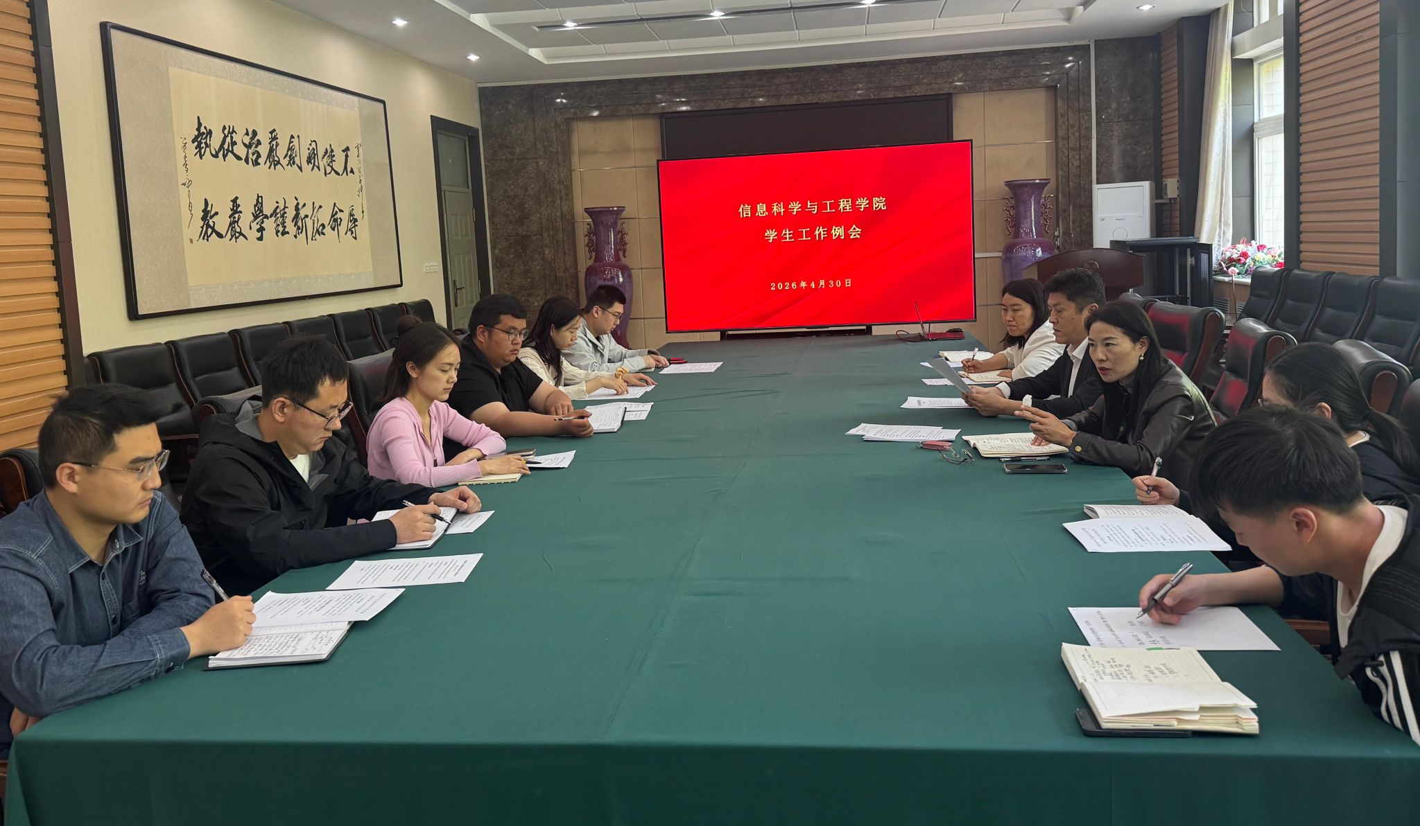 在6225会议室召开五一节假期安全稳定工作专题会议。学院党委书记郭晓旻、党委副书记魏雪芹及全体学工人员参会,会议由魏雪芹主持。