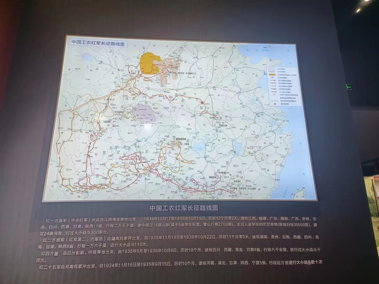 小队一进门就见到了七位烈士的遗像,七位烈士昂首挺胸,宁死不屈的模样令小队成员肃然起敬,致以崇高的敬意。接着我们看到了中国工农红军长征路线图,看着各路军队长征距离之远,小队想到了长征的艰苦与不易,想到了各位烈士为我们抛头颅,洒热血的场面,成员们热泪盈眶。